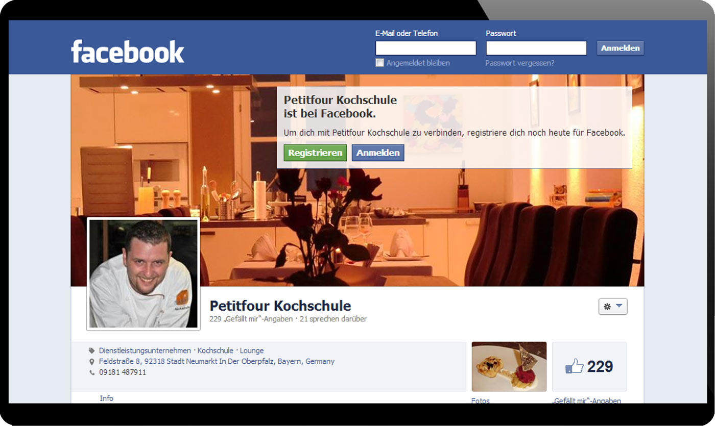 Auf ihrer Facebook-Seite zeigt die Kochschule Petitfour appetitliche Gerichte und die lockere Atmosphäre bei ihren Veranstaltungen. Wer will, kann sich hier einen Vorgeschmack auf die professionellen Kochkurse und Events bei Jörg Hailer verschaffen.